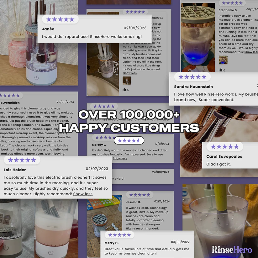 “I clean my brushes once a week now — it literally takes minutes. No more breakouts, no more messy sink. It feels like a luxury tool I actually use!”