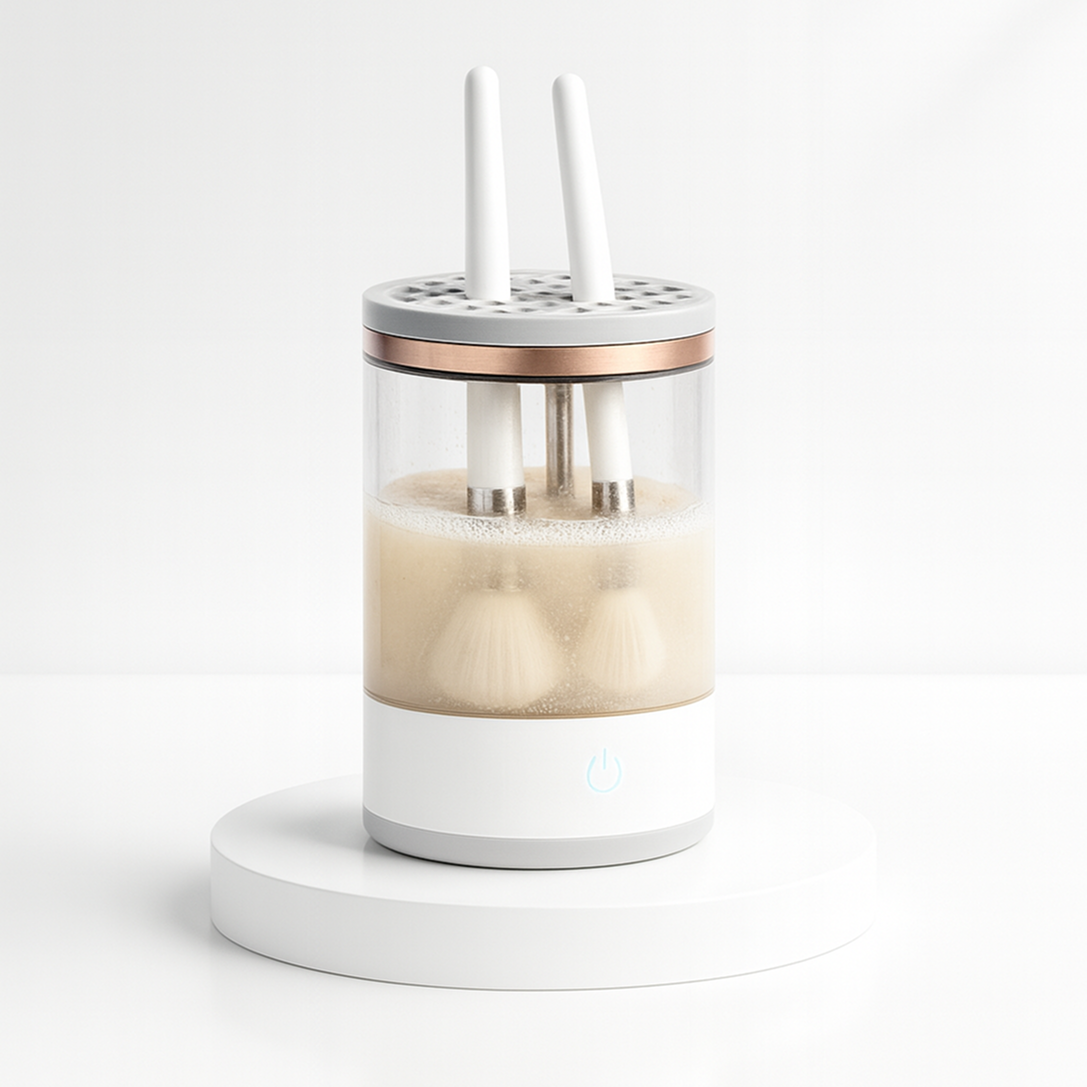 CLÉORA™ is a smart, automatic makeup brush cleaner designed to keep your beauty routine effortless and hygienic. With one touch, it removes makeup residue, bacteria, and oils — leaving your brushes spotless, soft, and ready to use.